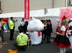 この日、ホームラン坊やのブースでは、ホームランバーを無料配布するという卑怯な手を使っての広報が行われていました。