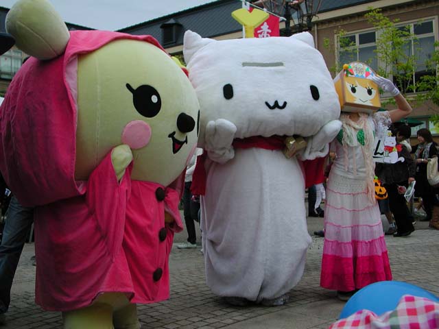 中央は地元東高校の「ぎんにゃん」と、佐川美術館の「さがわん・モモ」