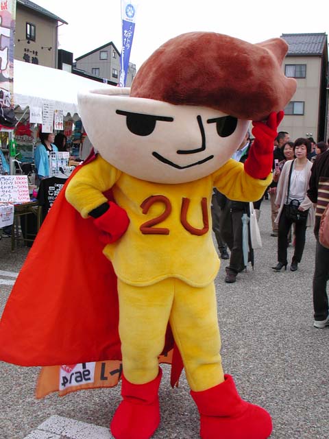 青森県黒石市名物のつゆ焼きそばのキャラクターで、ドンブリの中はちゃんとつゆ焼きそばが入っていました(見せてもらった)