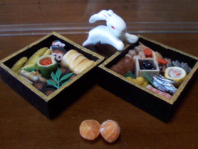 写真のおせちは、おもいっきり前の作品です(^^;