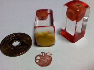 ミニチュアフルーツをエポキシレジンで封入したはんこの持ち手です。