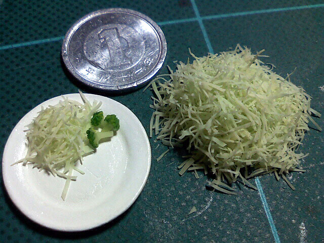 ねんどの千切りキャベツを刻みました。