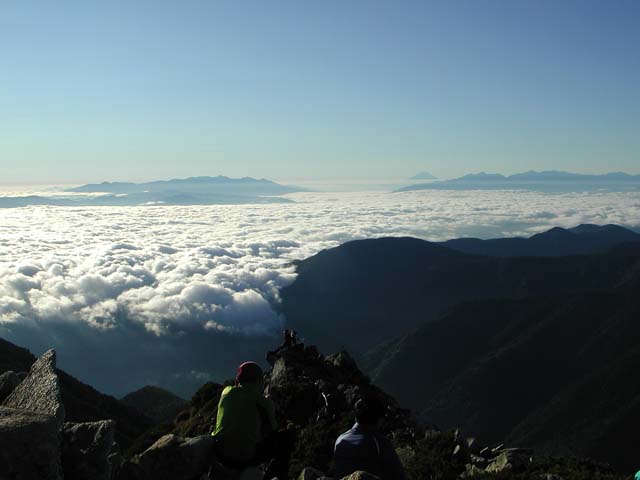 南に目を向けると雲海の向こうに富士山の姿も!(小さいけど中央右に富士山)