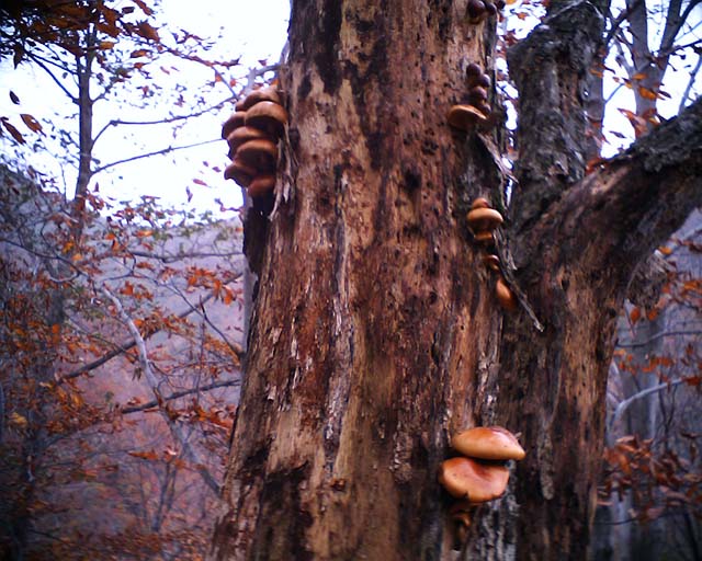 立ち枯れの木に生えていたキノコ。