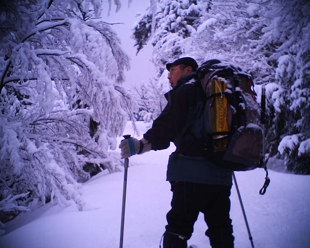 さすが12月でもあり、前日までの強烈な低気圧のせいもあって、登山道は枯れ葉が降り積もっていました。